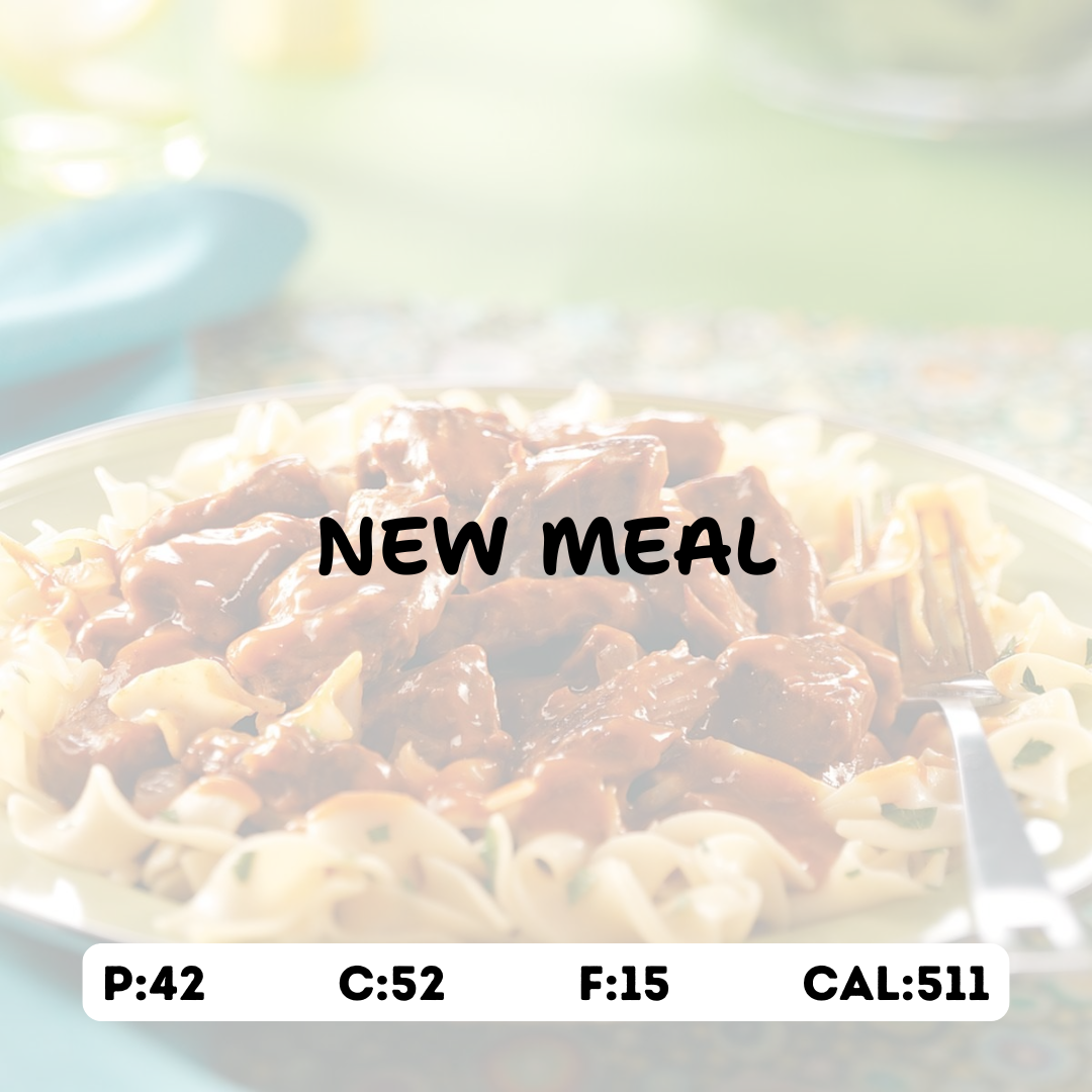 Beef, egg noodles, red peppers, onions, sour cream, beef stock, garlic, thyme, paprika, olive oil, kosher salt, black pepper (contains gluten & dairy)