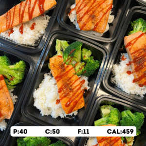 Honey Sriracha Glazed Salmon with White Rice & Broccoli